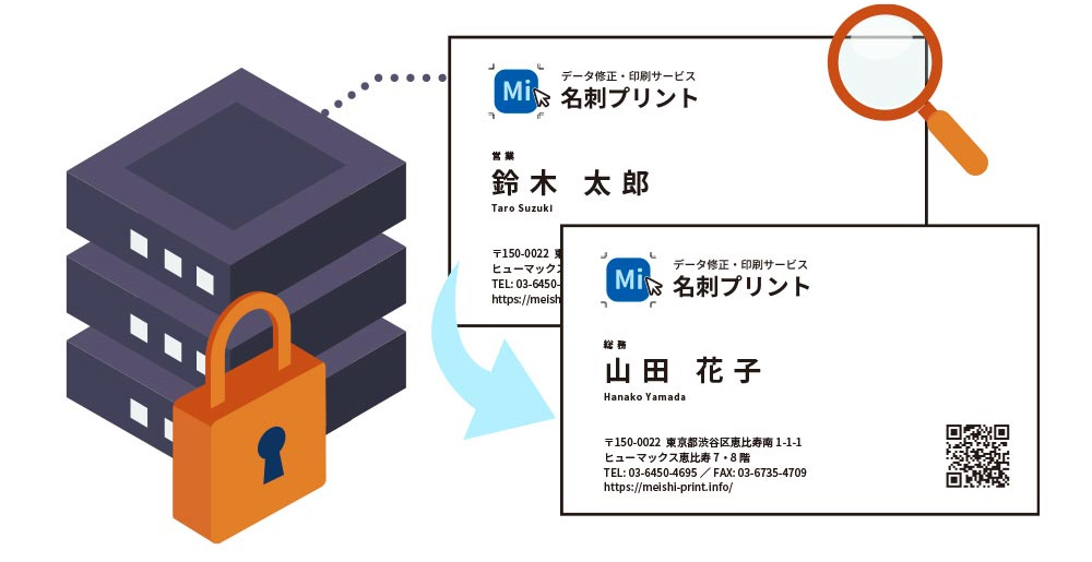 一度データ化した名刺デザインは、当社で大切に保管いたします。